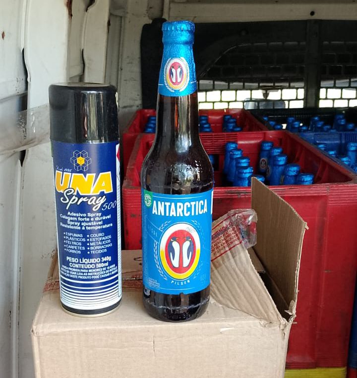 Os policiais pediram para o homem abrir as portas traseiras e encontraram cerca de 600 garrafas de cerveja de 600 ml da marca Antárctica divididas em 25 caixas de plástico. Além das garrafas, foram encontradas frascos de cola em spray. A equipe policial composto pelos GM´s Nóbrega e Tenório, com o apoio do GM Bulgarelli (em estado de estágio), perceberam que nas garrafas estavam com cola que aparentemente removida.