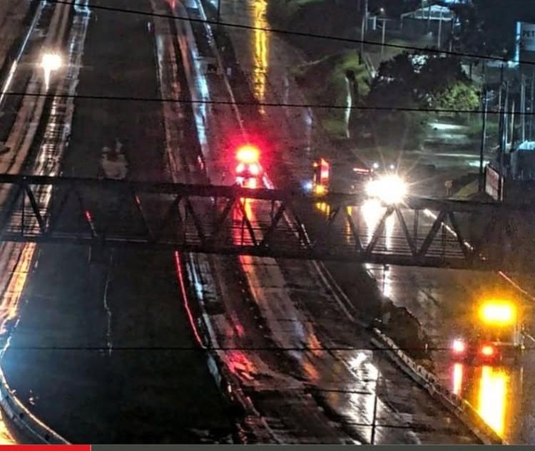 A Concessionária fechou a via até o resgate do motorista e continuou interditada até a nível da água baixar.