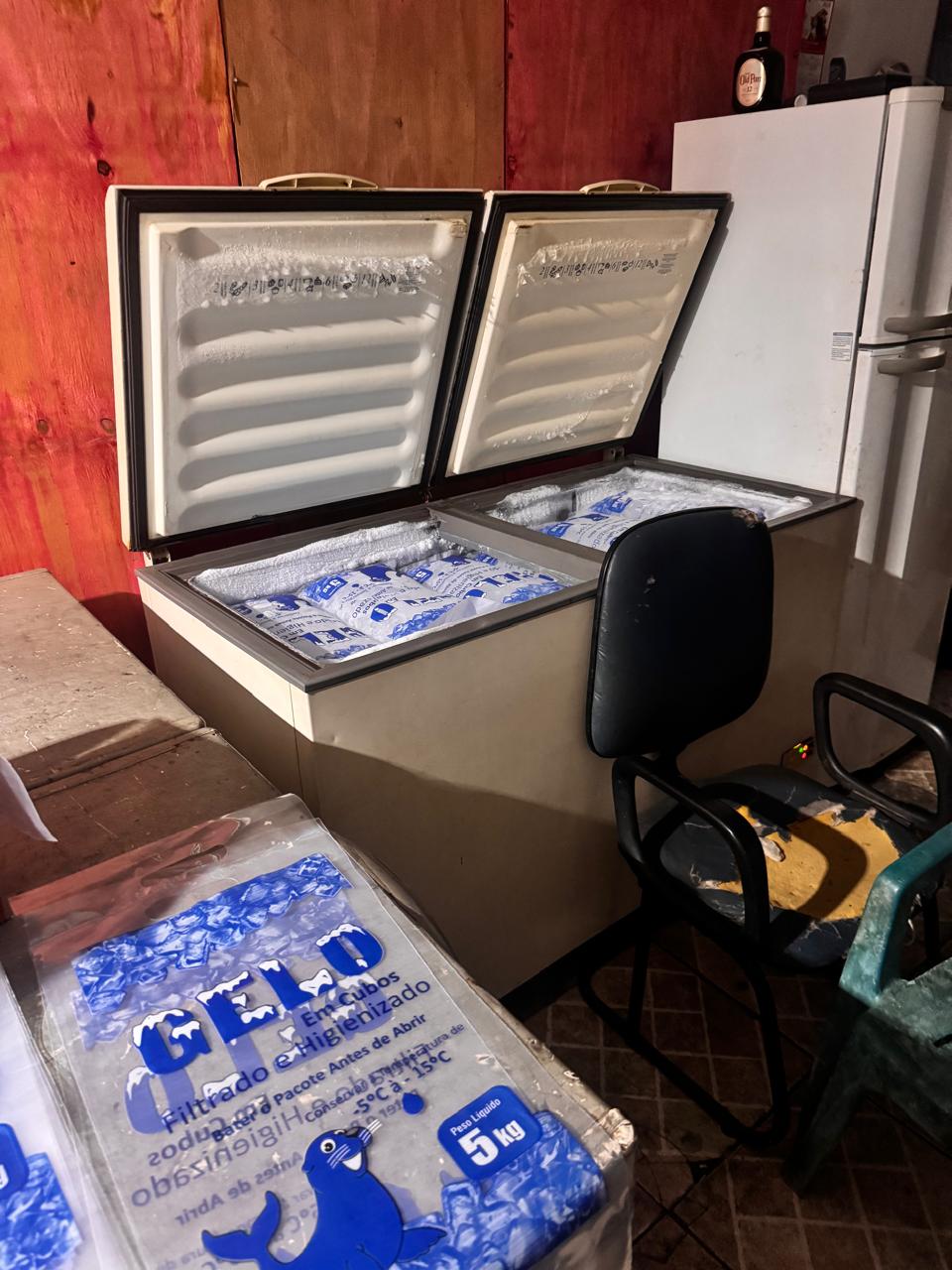 Os agentes da GM foram até o local e localizaram uma máquina que produz gelo, embalagens e outros artefatos que configuram a produção em escala do produto.