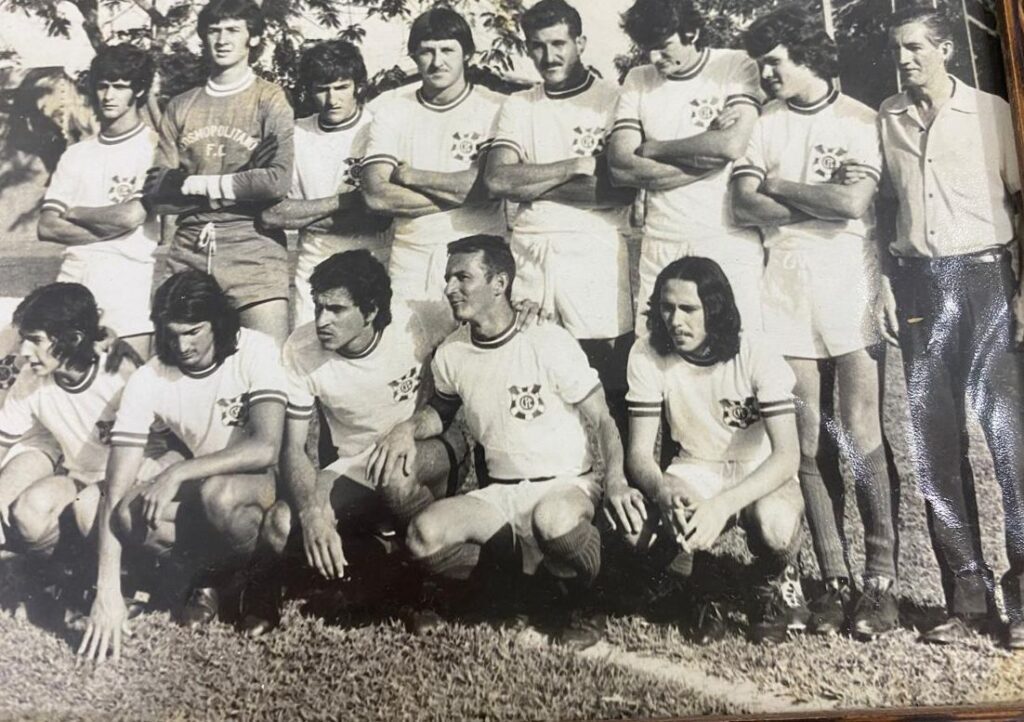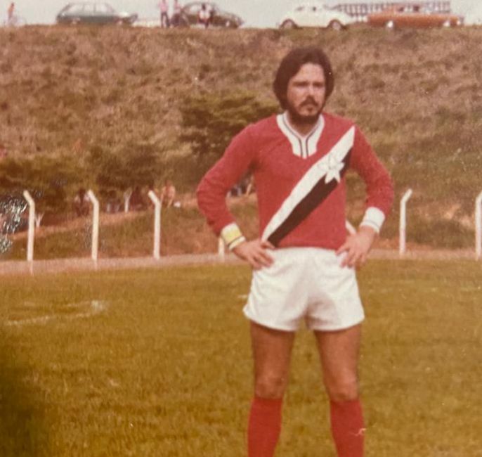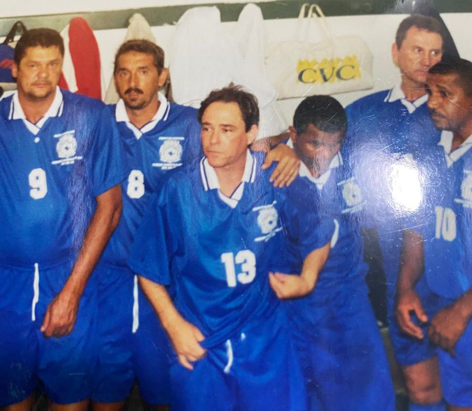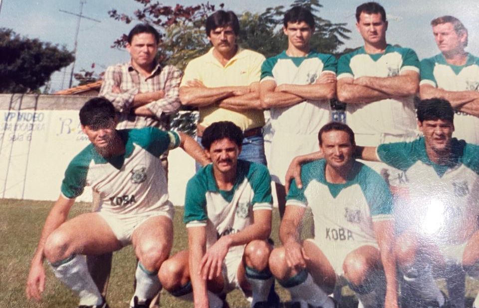 Com o uniforme da Secretaria de Esportes, Nallin ao lado de grandes nomes do futebol cosmopolense